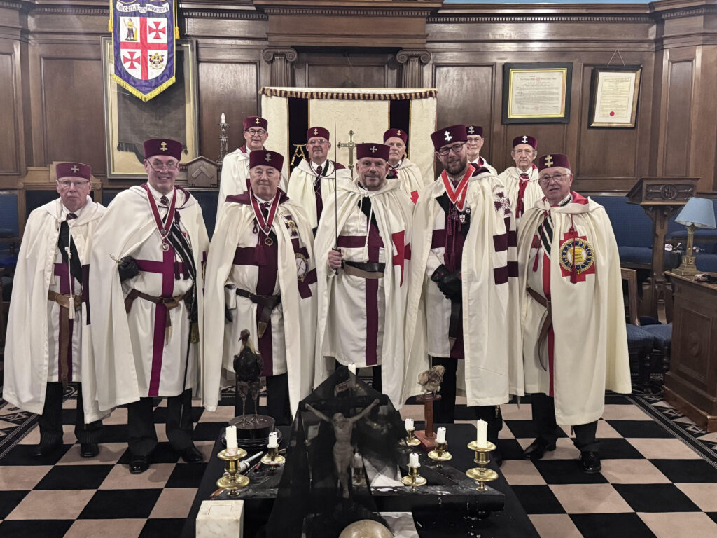 The meeting was attended by the Provincial Prior and was a full team event. The meeting was also attended by The Very High and Right Eminent Great Seneschal, Andrew Christopher Rainbow, who presided over the centenary items of business in the Preceptory – where he was also made an Honorary Member prior to entering the Preceptory.