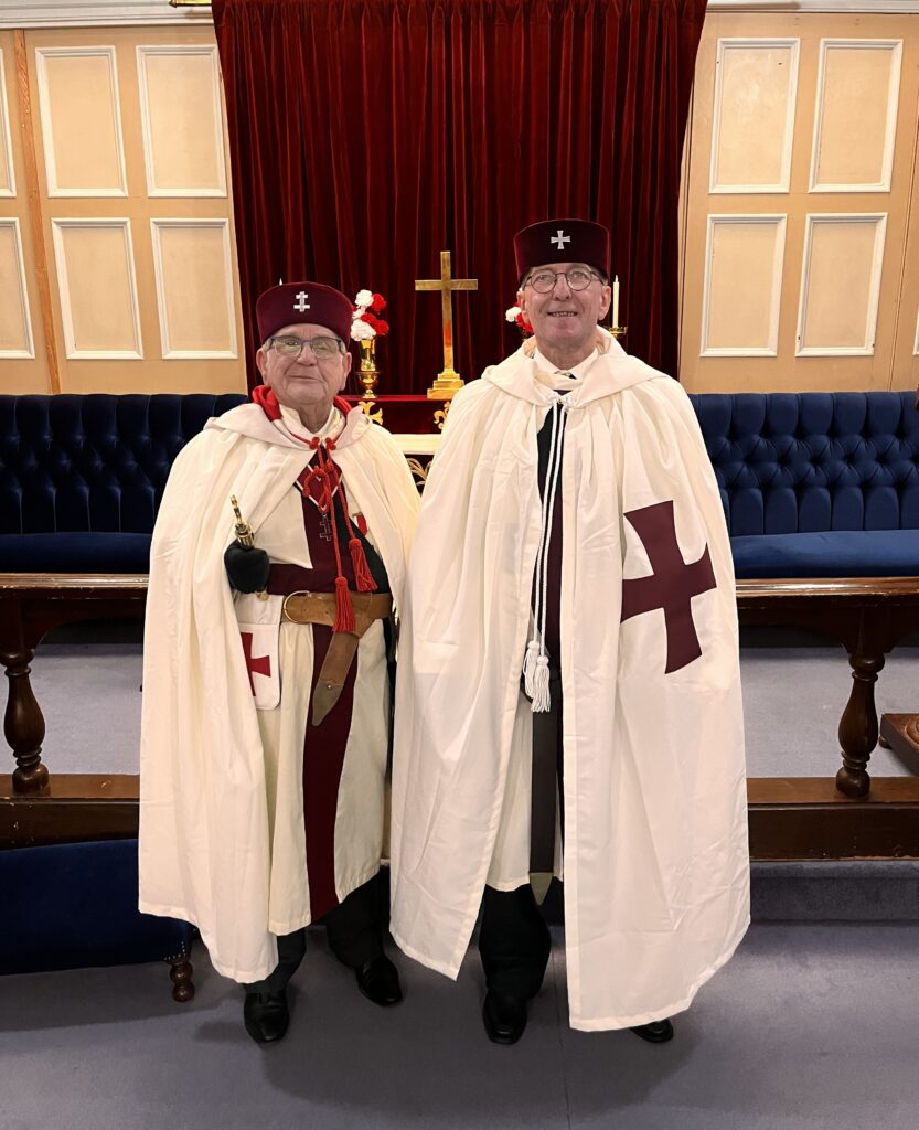 The Provincial Prior and the Eminent Preceptor of the Salamanca Preceptory, E. Kt. Robert Whitlow with the newest Bro. Knight in the Province (as of that evening) Kt. Mark Jennings. An unforgettable evening was has by all!
